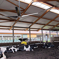 Our Lubratec ceiling fans are special large capacity fans with a very high air circulation capacity and low energy consumption. They distribute the air in the barn gently but effectively without creating draughts. In this way, the energy-efficient large fans supply your animals with sufficient fresh air, discharge the used air from them and the barn is pleasantly cooled.