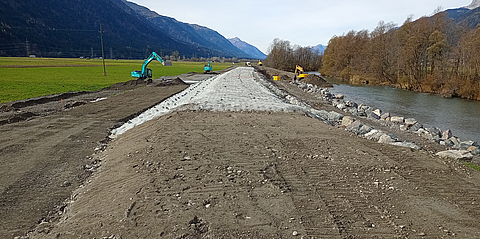 The Gailtal valley in Austria was repeatedly exposed to flooding and high water. To protect the region, a floodable dam area was built, among other things. Our Incomat geotextile concrete mat was used here, which significantly reduces the risk of failure of dykes and dams in the event of flooding. This innovative solution protects against internal erosion processes and offers an environmentally friendly alternative to conventional rockfill. This not only results in significant savings in transport costs and emissions, but also speeds up project completion.